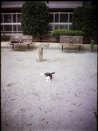 *2 近所のネコ公園。夜中に10匹以上の集会が催されている。